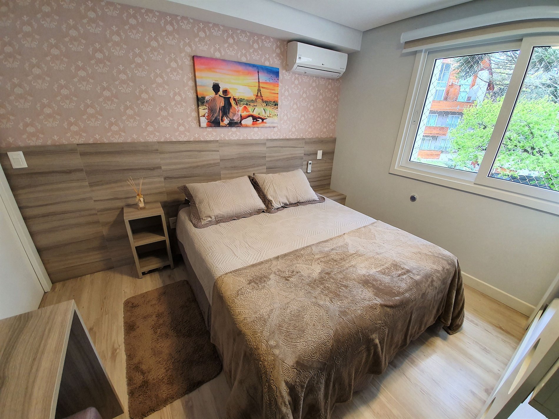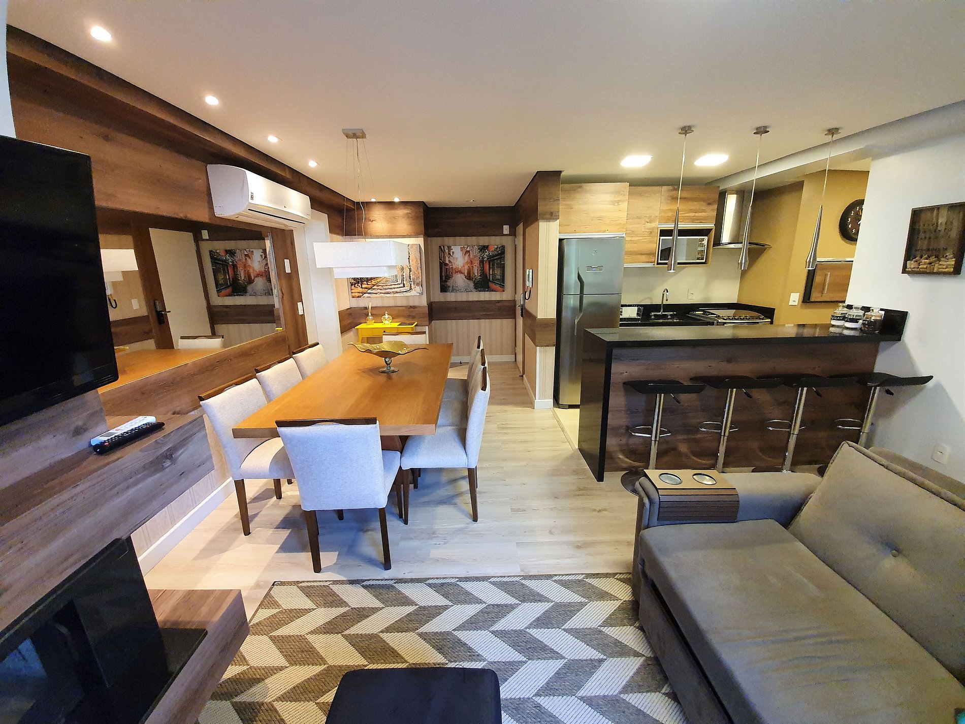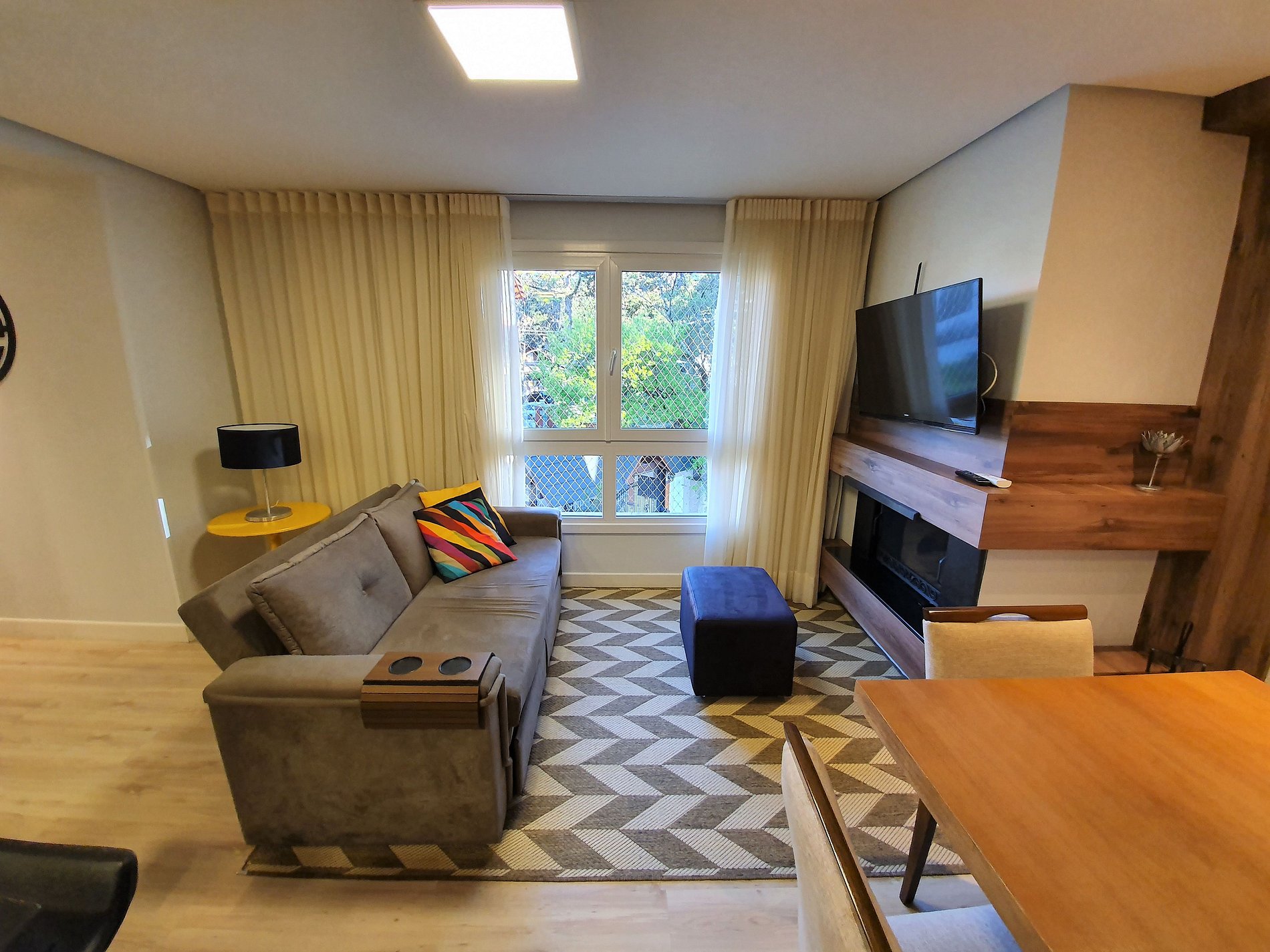 Apartamento de alto padrão de 84mts, 2 quartos com suítes (a segunda suíte é reversível), lareira, aquecimento, ar-condicionado, sala de estar/jantar moderna e equipada, 1 vaga de garagem coberta. Localizado no Centro de Gramado-RS, entre 50 e 300mts a pé dos principais pontos turísticos (Rua Coberta, Palácio dos Festivais, Igreja Matriz, Rua dos Restaurantes, Aldeia do papai Noel e etc.) 3x TVs Smart com canal aberto digital, Netflix (usar conta pessoal), Youtube e internet Wifi de alta velocidade.