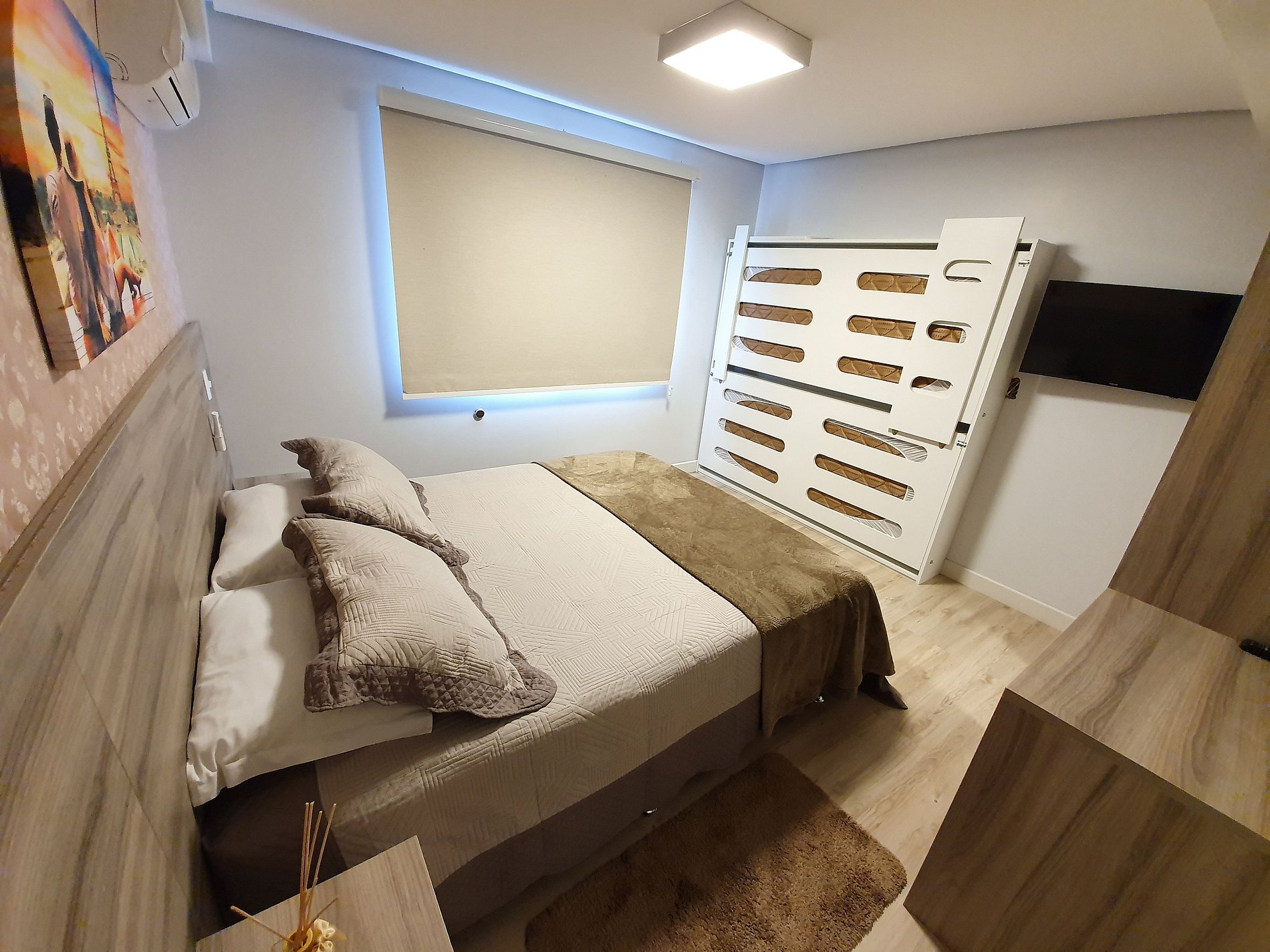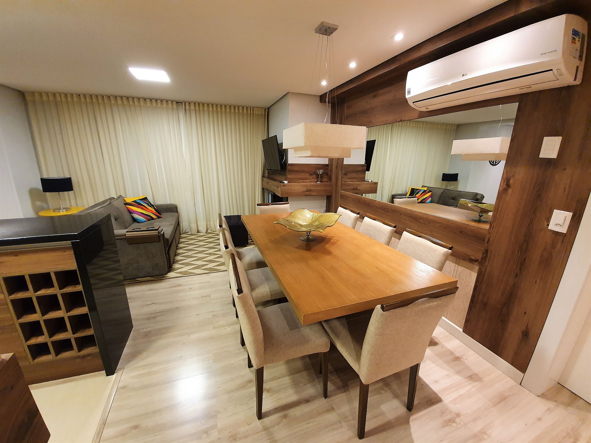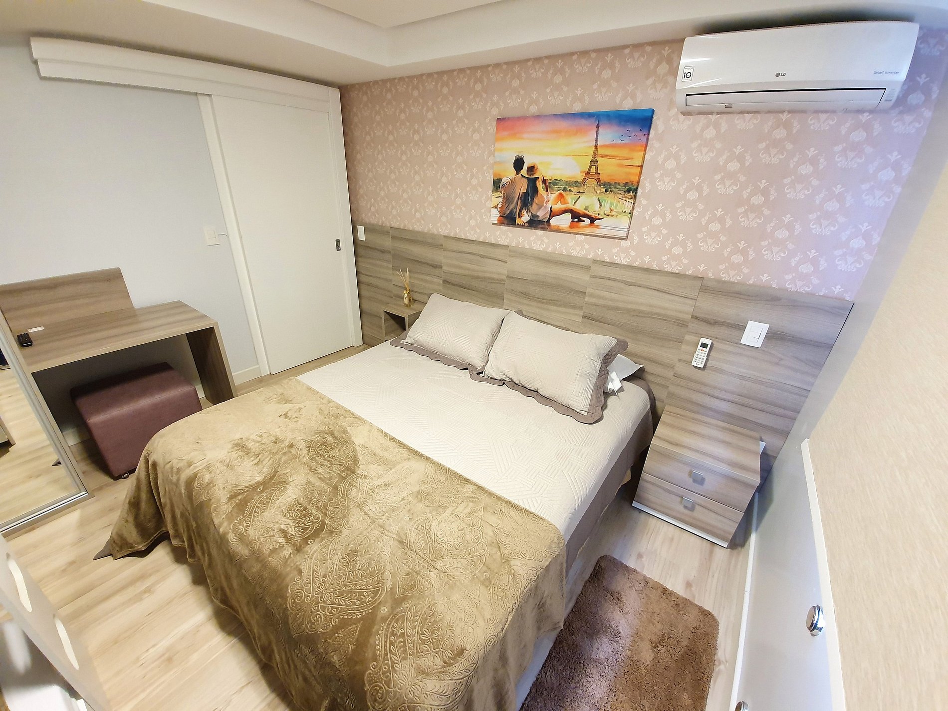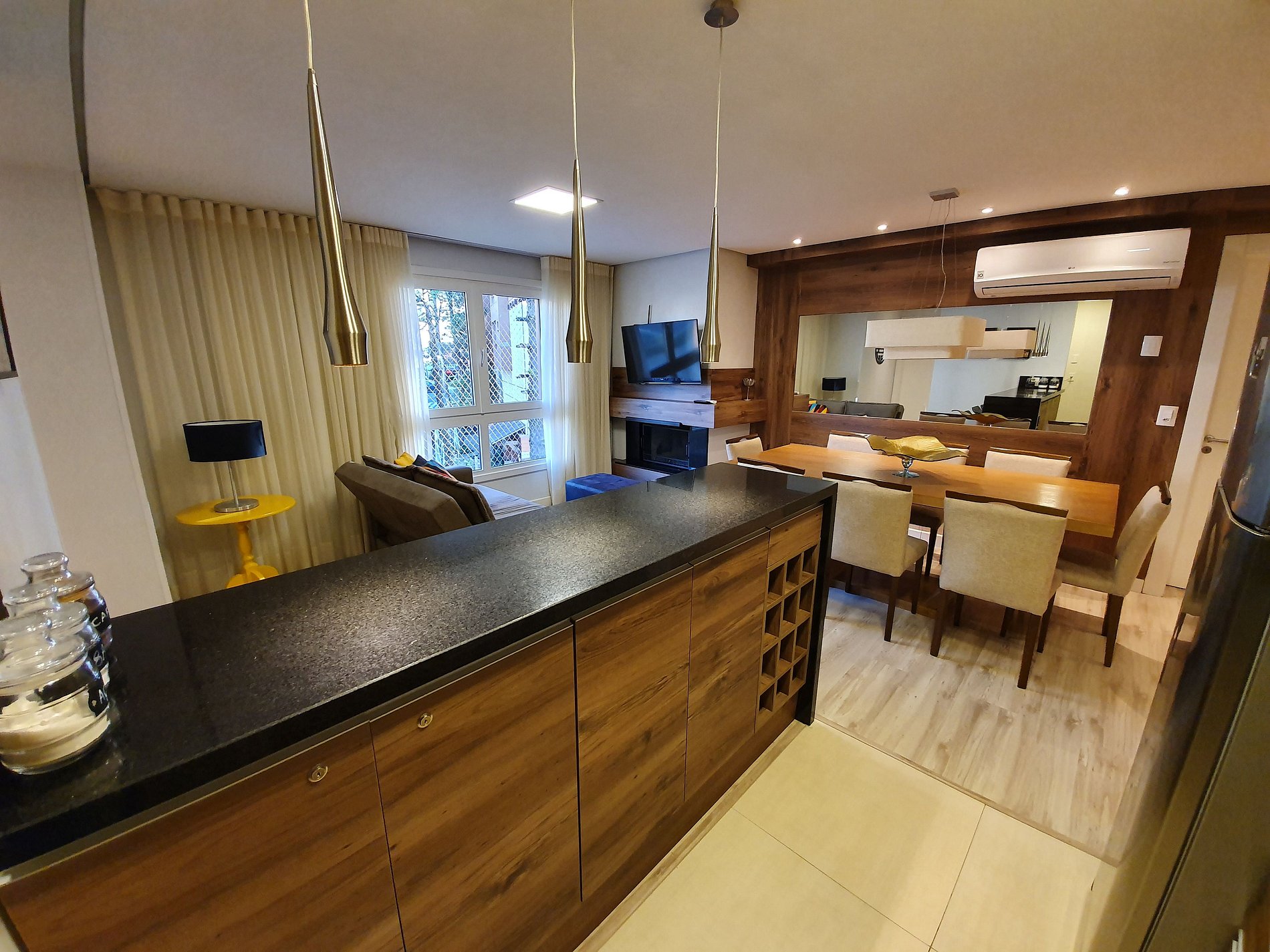 Apartamento de alto padrão de 84mts, 2 quartos com suítes (a segunda suíte é reversível), lareira, aquecimento, ar-condicionado, sala de estar/jantar moderna e equipada, 1 vaga de garagem coberta. Localizado no Centro de Gramado-RS, entre 50 e 300mts a pé dos principais pontos turísticos (Rua Coberta, Palácio dos Festivais, Igreja Matriz, Rua dos Restaurantes, Aldeia do papai Noel e etc.) 3x TVs Smart com canal aberto digital, Netflix (usar conta pessoal), Youtube e internet Wifi de alta velocidade.