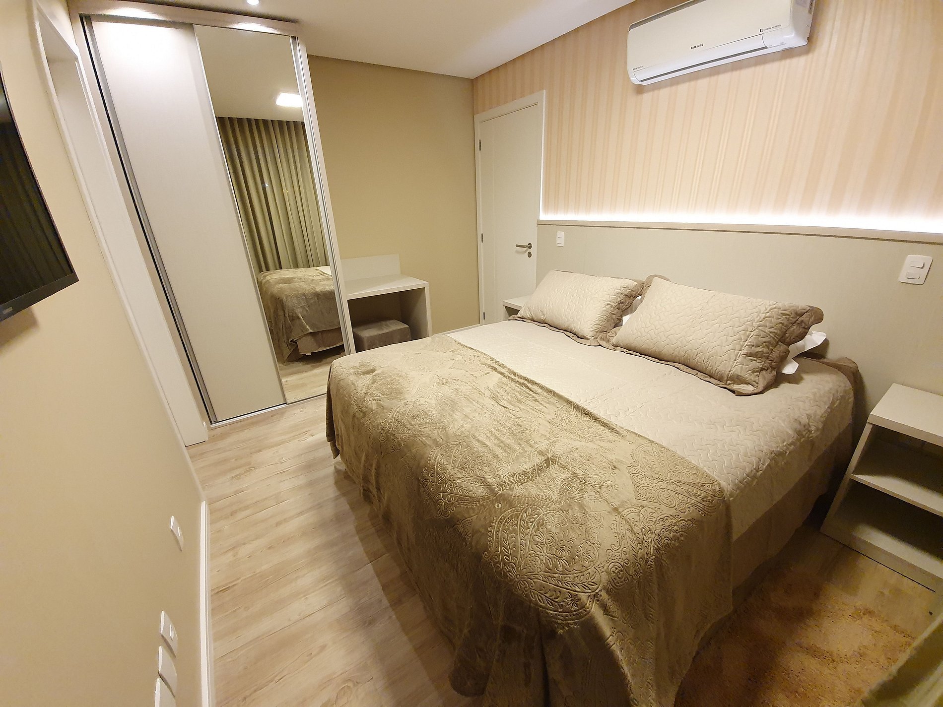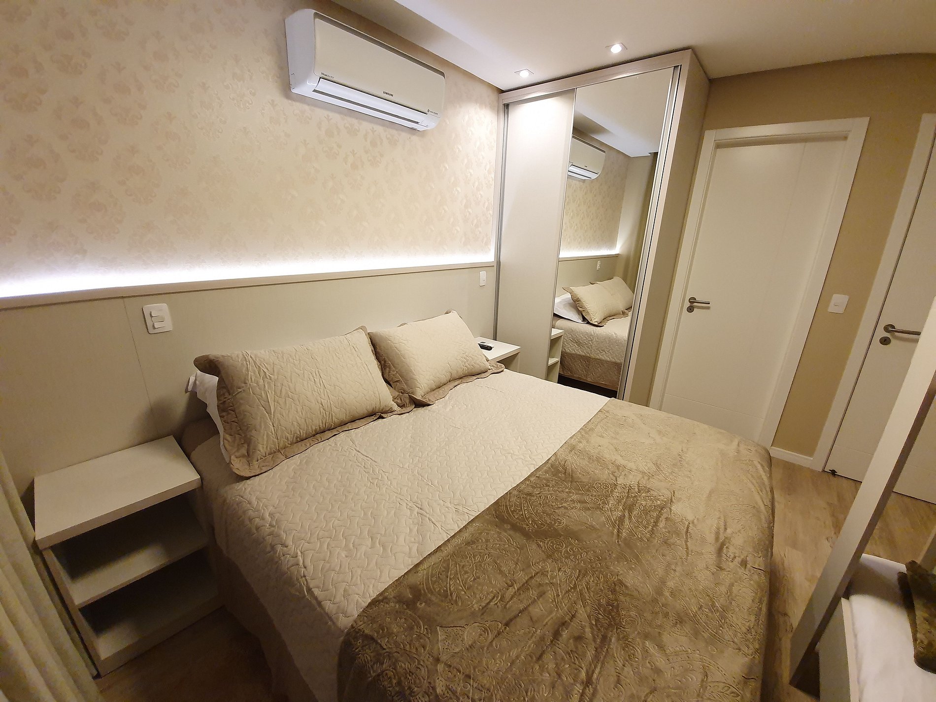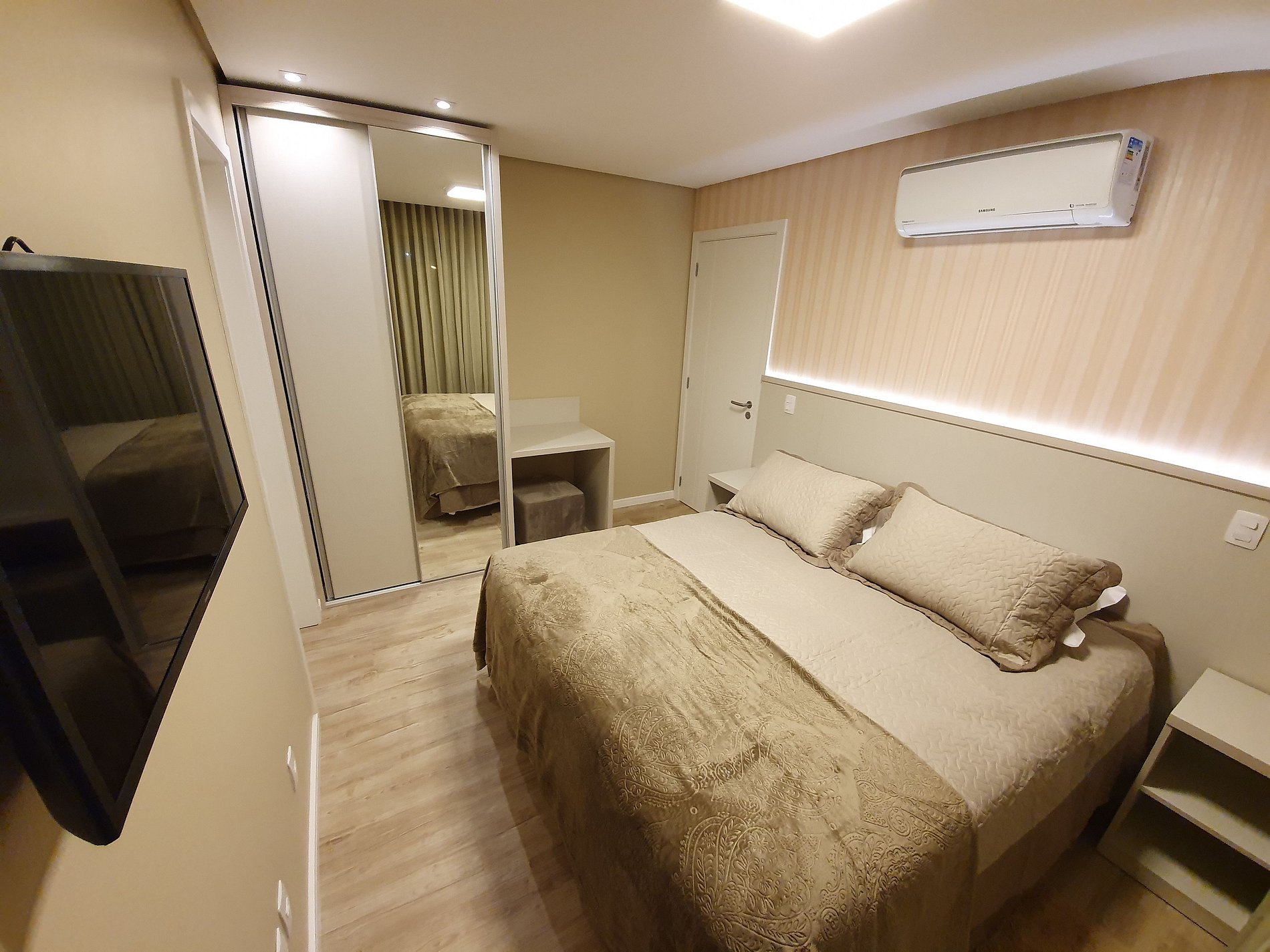 Possui aquecimento com ar Split inverter (Quente e frio) em todos os ambientes.