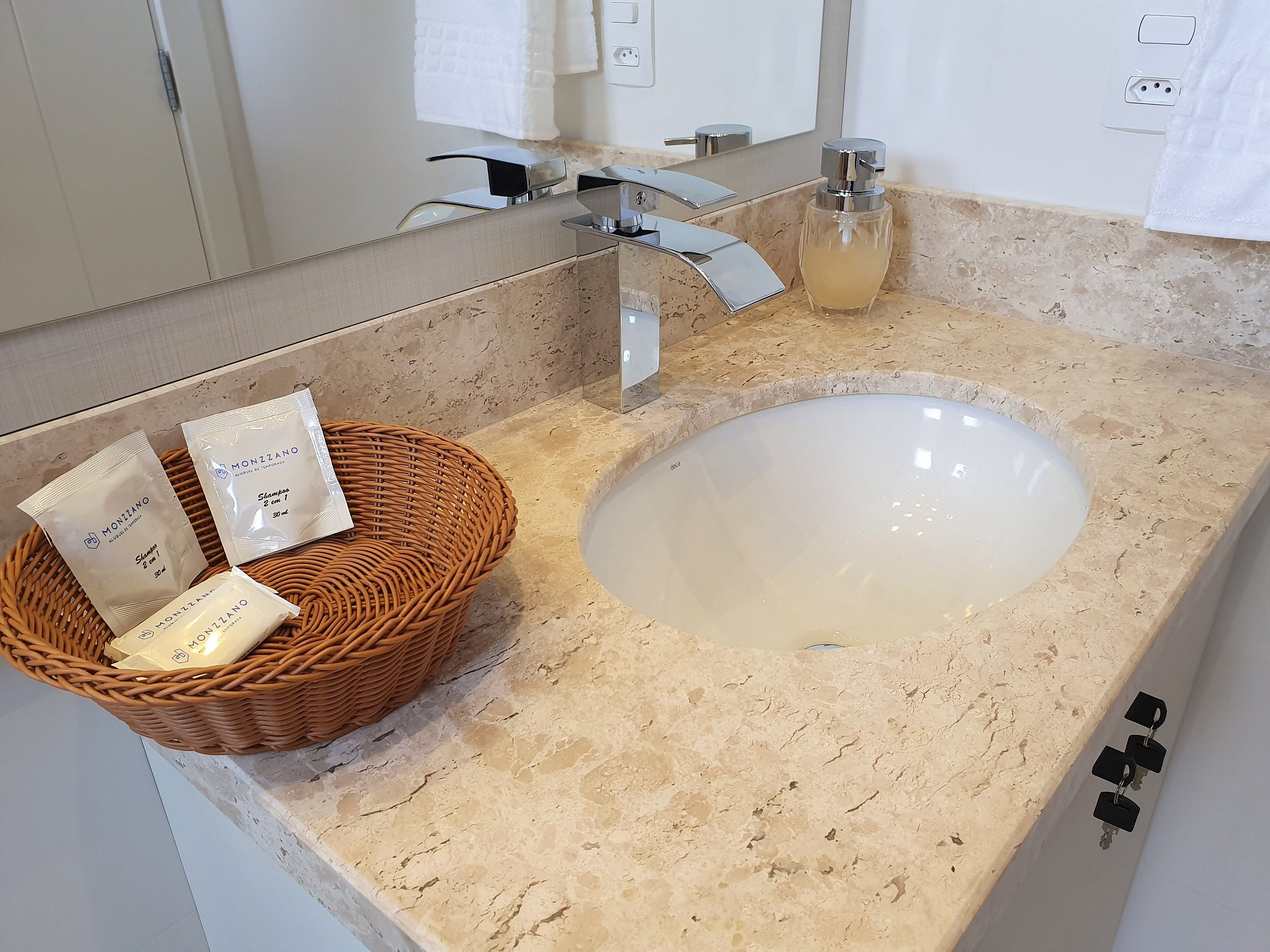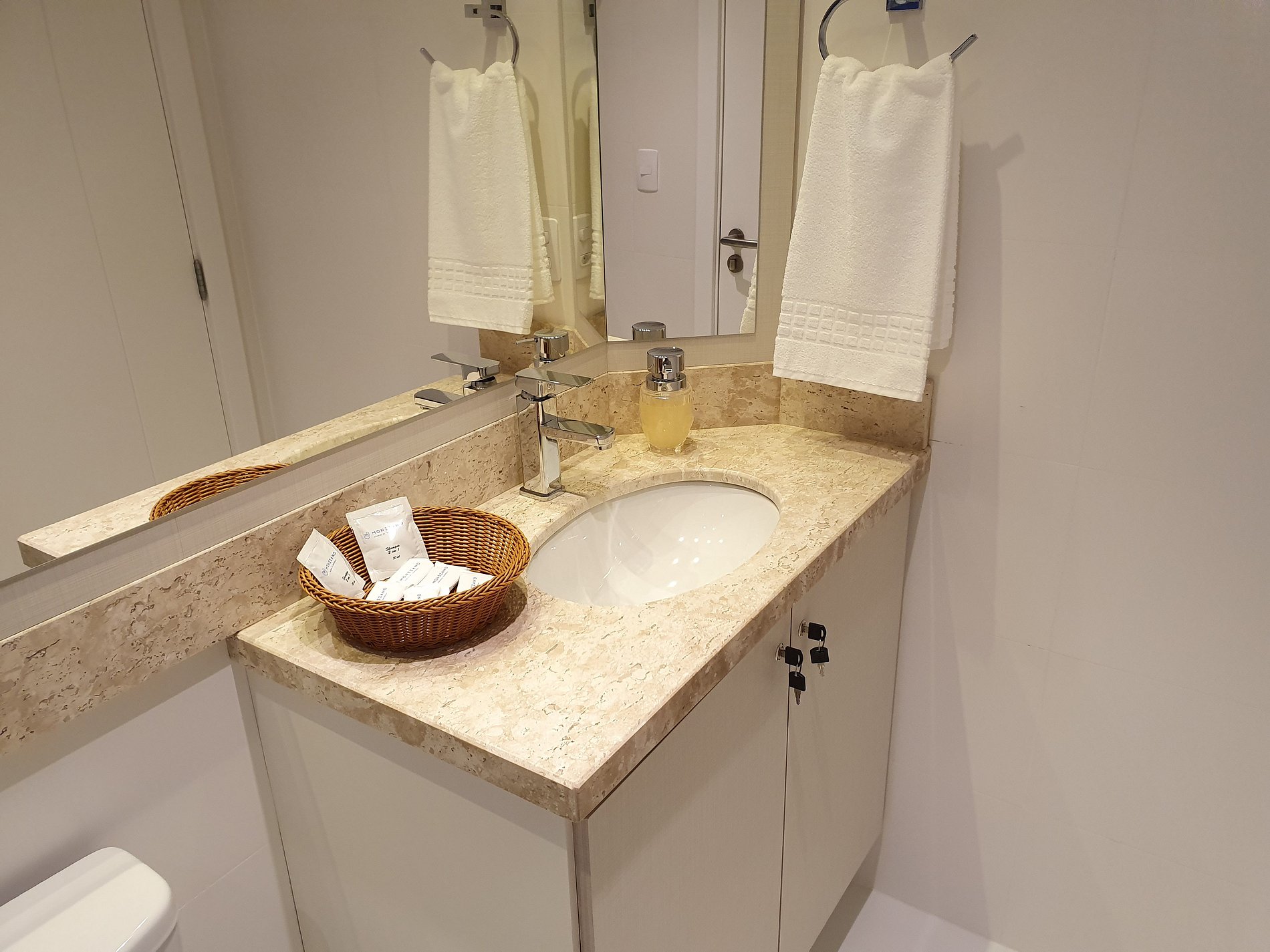 Disponível sabonete e shampoo tipo hotel para cada hospede; papel higiênico. Quaisquer outros itens de higiene pessoal não estão disponíveis, assim como esses itens disponíveis não são reabastecidos durante a estadia.