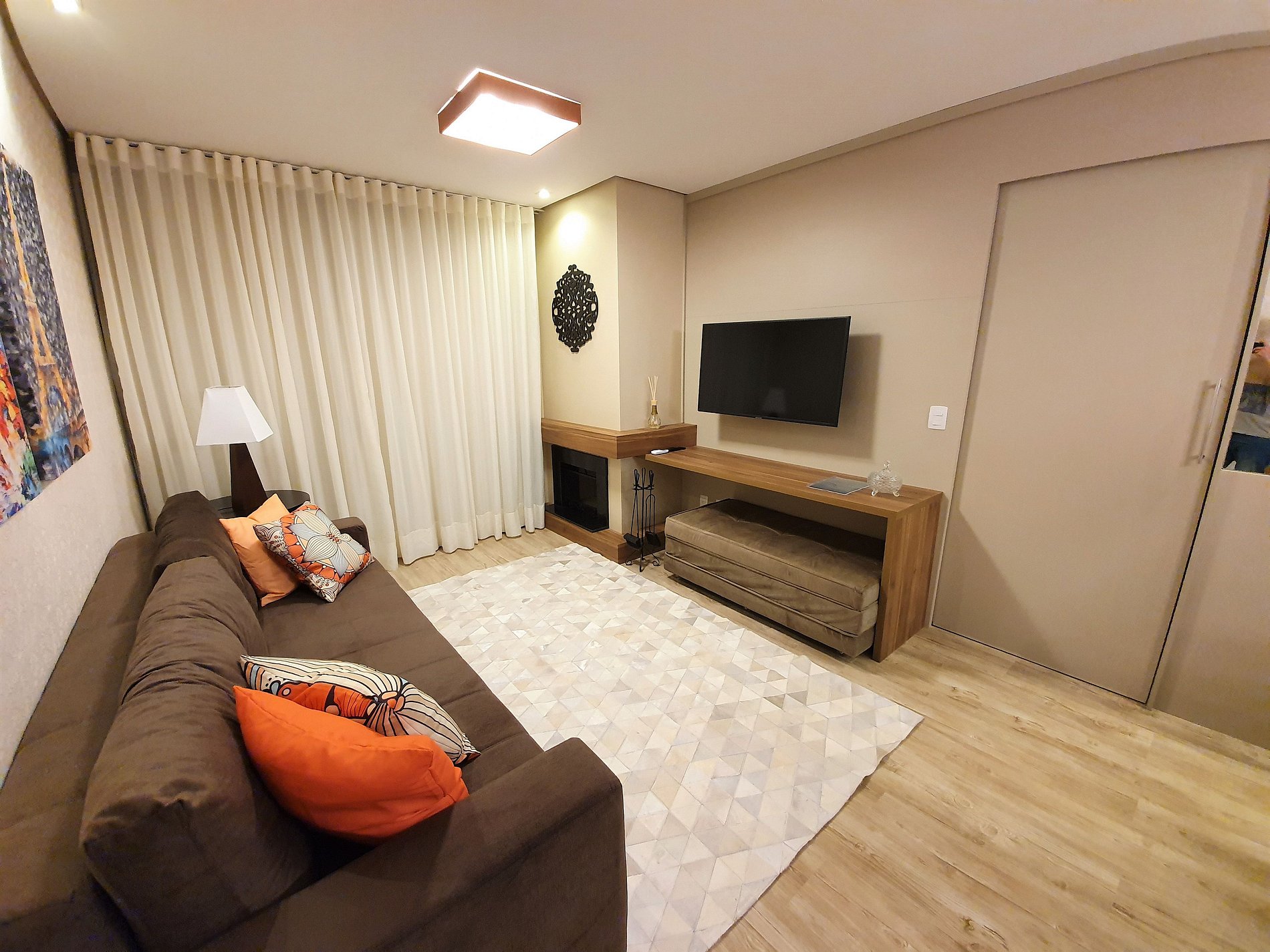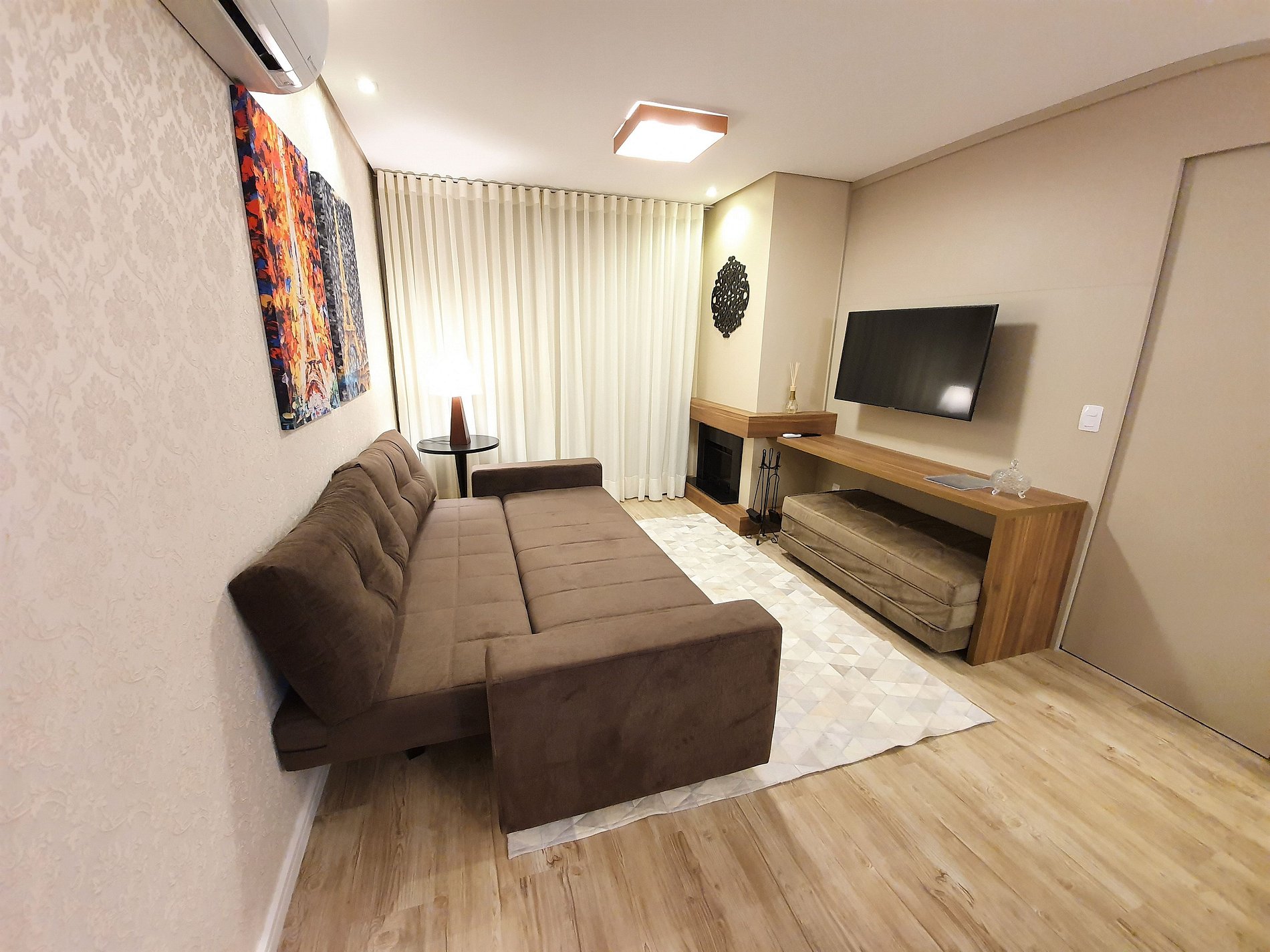 Apartamento de alto padrão de 80mts, com 2 quartos com suítes, lareira, aquecimento, ar-condicionado, sala de estar/jantar moderna e equipada, 1 vaga de garagem coberta. Localizado na principal Avenida do Centro de Gramado-RS, em torno de 800mts a pé dos principais pontos turísticos (Lojas, Rua Coberta, Palácio dos Festivais, Igreja Matriz, Rua dos Restaurantes, Aldeia do papai Noel e etc.) e a 300 mts do Centro de Convenções Expogramado. 3x TVs Smart com canal aberto digital, Netflix (usar conta pessoal), Youtube e internet Wifi de alta velocidade.
