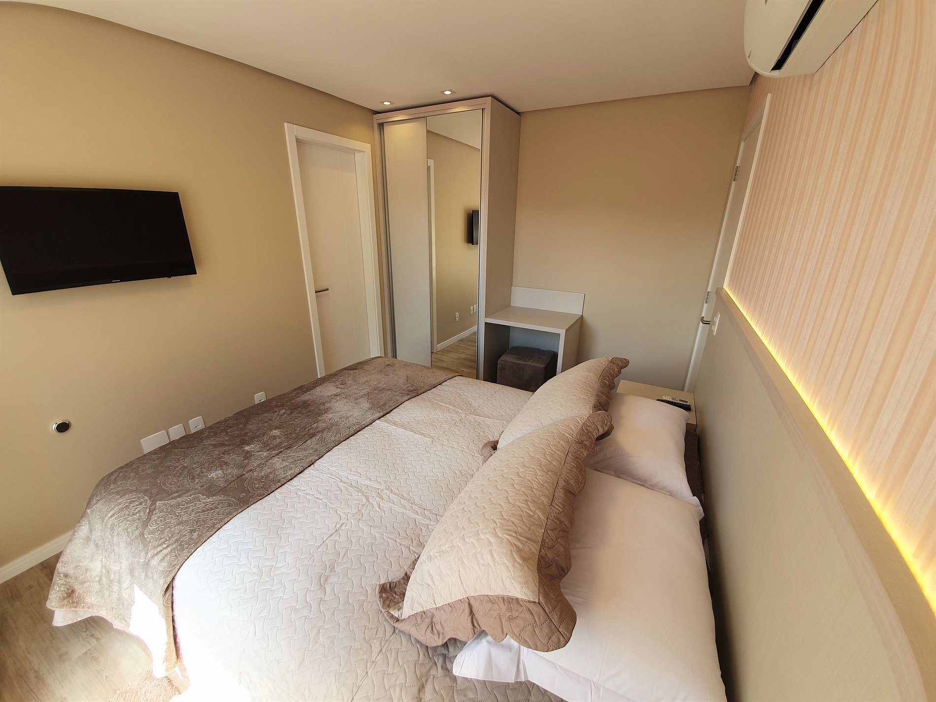 Possui aquecimento com ar Split inverter (Quente e frio) em todos os ambientes.
